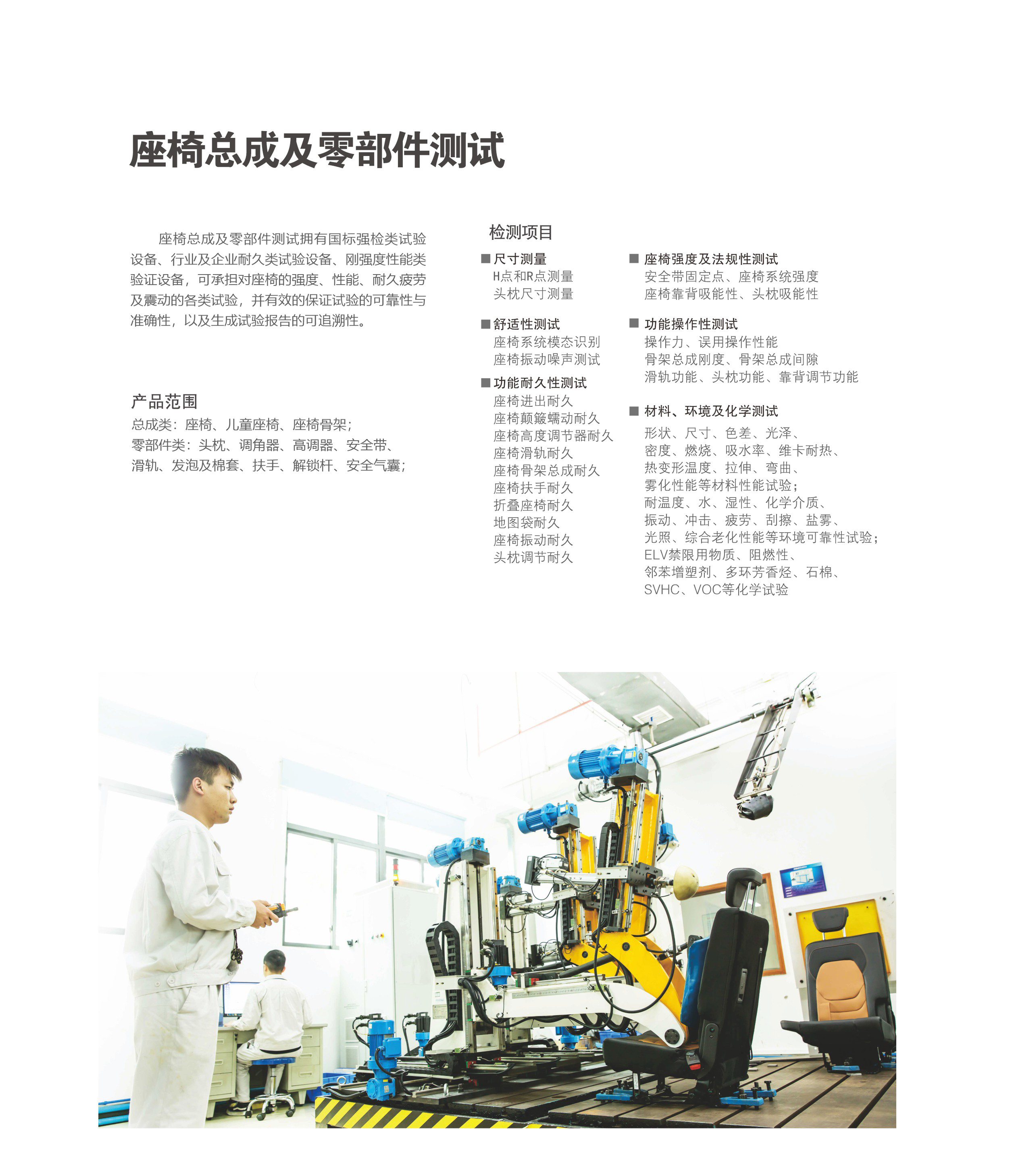 座椅總成及零部件測試